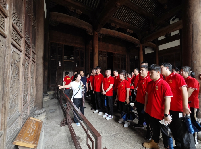 在文化氛围厚重、素有“木雕艺术博物馆”“民族艺术殿堂”之称的龙川胡氏宗祠,学生们不但欣赏到了传统建筑艺术之精美,叹服先辈工匠的勤劳与智慧,更感悟到家风家教、家国情怀的重大意义。他们深刻认识到,个人的成长离不开良好的家风家教。事业的成功离不开家国情怀。徽商精神境界就在于常怀回报社会、报效国家之情。