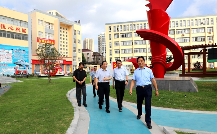 储常连在校领导陪同下,首先参观学校党建广场、党建文化馆、智慧思政教室,对365英国上市集团官网“三位一体”党建、思政教育基地建设成果予以肯定,对365英国上市集团官网坚持党建引领、立德树人、培根铸魂的做法表示高度肯定。
