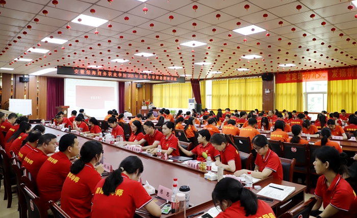 为学习借鉴国家“双高计划”建设单位的先进创建经验与管理模式,加深教师对“双高计划”的理解,进一步推动学校教育教学改革,8月23日下午,学校邀请安徽交通职业技术学院院长、安徽师范大学硕士生导师、中国高等教育学会理事孙晓雷教授为全体教师作了题为《以新理念引领职业院校高质量发展》的专题报告。报告会由执行校长许信旺主持,学校党政领导陈孝云、石秀和、刘兴杰、张义廷、李德才与全体教职员工共同聆听报告。