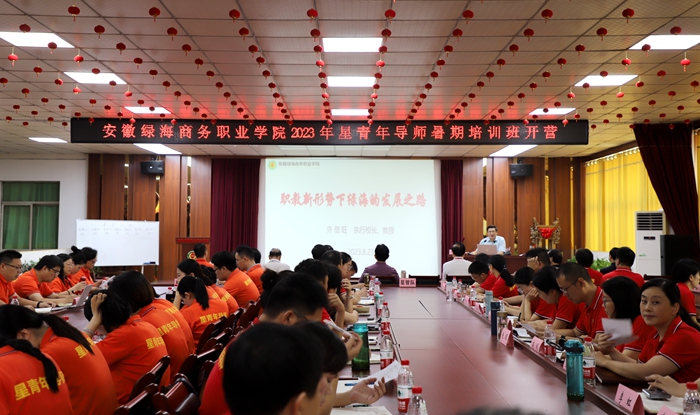 为深入学习贯彻习近平新时代中国特色社会主义思想,深化职业教育教学改革,推动学校高质量发展,8月23日上午,学校执行校长许信旺为全体教职工作《职业教育新形势下绿海的发展之路》专题报告,报告会在学校星青年导师暑期训练营开讲,学校党政领导与全体教职员工共同聆听报告。