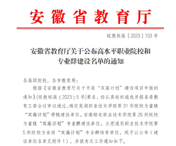热烈祝贺365集团成功入选安徽省高水平专业群建设单位