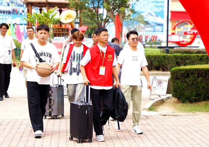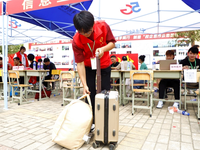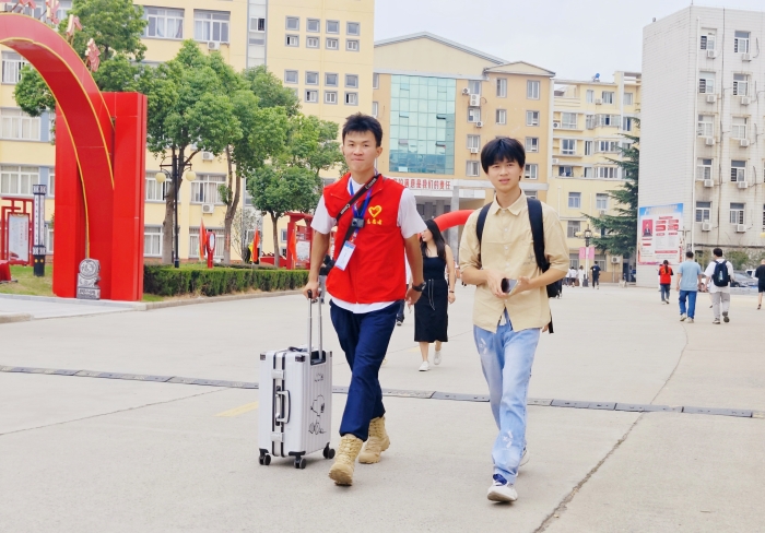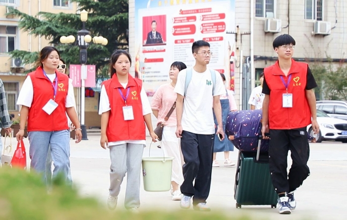 宿舍楼下,印入眼帘的是学长学姐的身影。接过行囊,一件接一件,挥汗如雨的行李搬运是最温情的告白。志愿者们在用最周到的行动,以心迎新、热情满满,欢迎萌新们到达“新家”。