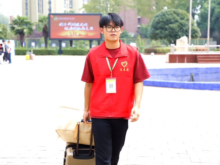 志愿者22级信息工程学院物联网应用技术何章荣同学表示,在去年的今天他也曾作为新生,对很多事情都不熟悉,幸好当时学校有志愿者指引,解答疑惑,他才能这么快融入新学校。迎新工作人员所表现出的素质及担当,使他感受到了学校的热情,所以他希望能把这种奉献、友爱、互助、进步的志愿者精神传承下去。