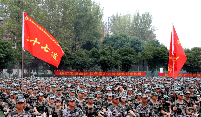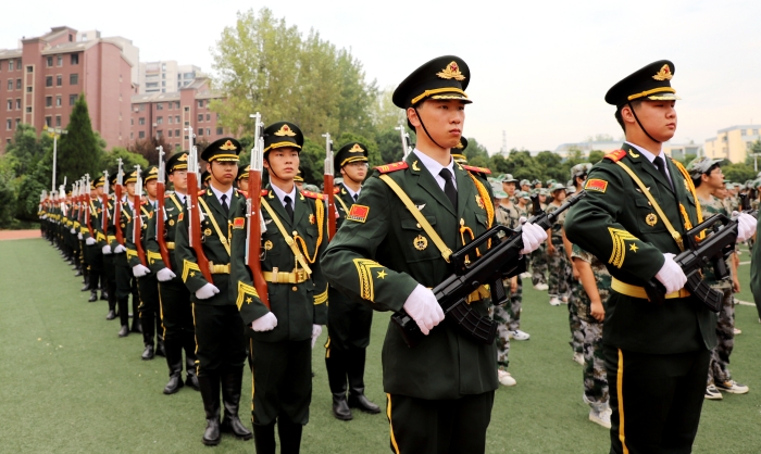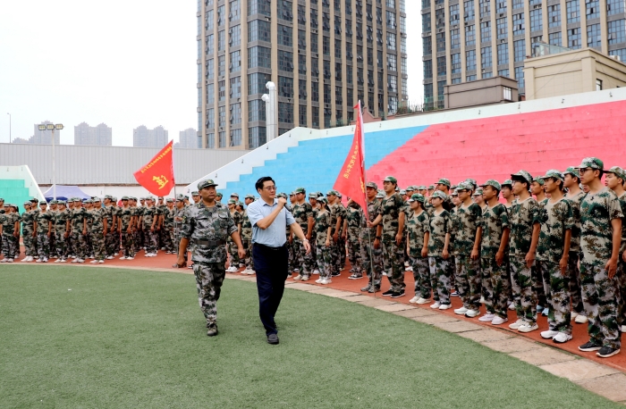 执行校长许信旺在军训团副团长、总教官的陪同下,检阅了军训队列,同学们口号激昂,气势豪迈,精神饱满,一声声为校争光,喊出莘莘学子助力强国兴校的铮铮青春誓言。