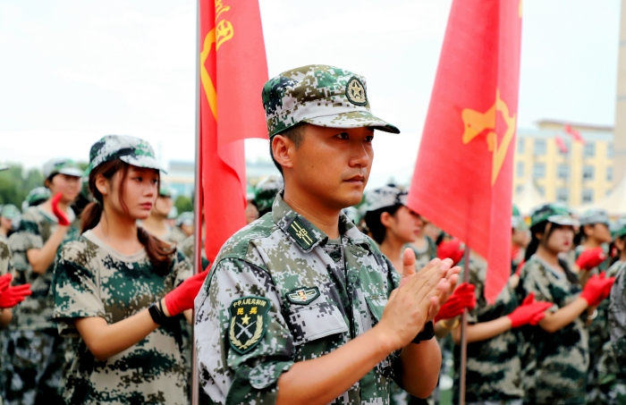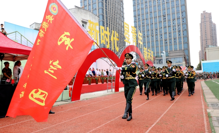 会上,伴着激昂雄壮的《义勇军进行曲》和冉冉升起的五星红旗,军训汇演暨开学典礼正式拉开帷幕。