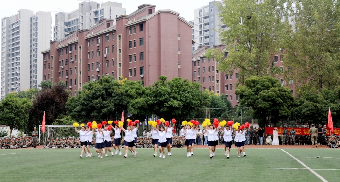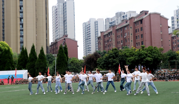 随后新生受阅方队踏着激昂的分列式进行曲,依次走向主席台,进行了方队表演、队列表演,擒敌拳、青春韵律操、匕首操、星青年舞蹈表演。吸睛夺目的特色方阵、利落干脆的格斗术、强劲有力的匕首操、青春活力的韵律操、英姿飒爽的擒敌拳,一招一式都整齐划一、气势恢宏,展现了绿海星青年的青春风采和精神风貌,向全校师生递交了一份优异的答卷。