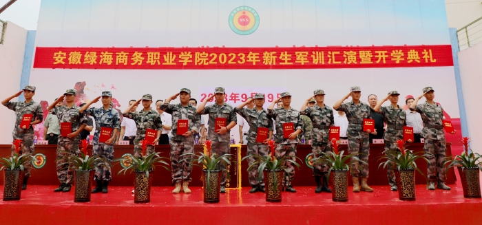 英姿飒爽迷彩戎装,奋楫逐浪扬帆起航。9月19日上午8:30,365集团在田径场隆重举行2023年新生军训汇报表演暨开学典礼。学校董事会、党政领导孙永、许信旺、石秀和、江传瑞、刘兴杰、李德才、孙圣祥,肥西县人民武装部副部长代颂贤等领导共同出席。各二级学院院长、支部书记,相关部门负责人,全体军训教官,辅导员以及全体新生参加典礼。大会由党委委员、文化行政总监张义廷主持。