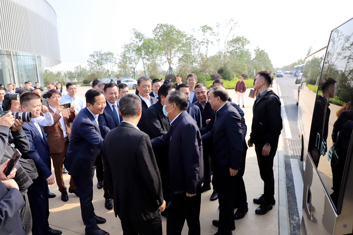10月12日,中国中西部经贸文化考察团一行60人在第十二届全国政协副主席刘晓峰带领下考察安徽,在合肥蔚来新能源汽车等公司进行了深入走访考察,蔚来汽车负责同志向刘晓峰副主席及考察团详细介绍了蔚来新能源汽车的发展历史、文化理念、核心技术、生产运营、全球布局、战略目标及核心竞争力。刘晓峰副主席在省政协主席唐良智、原国务院国有重点大型企业监事会主席赵华林、合肥市区相关领导及考察团成员陪同下仔细听讲,不时提问,深入了解交流,场面氛围融洽热烈,刘晓峰副主席的精彩提问和专业指导给企业方和考察团留下深刻印象和教育启示。