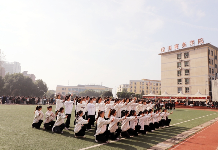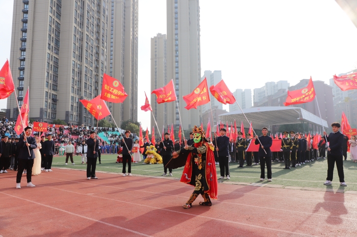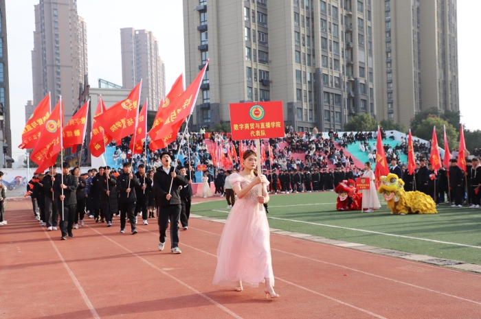 伴随着激昂奋进的《运动员进行曲》旋律,国旗护卫队庄重托举国旗步入会场,校旗队、彩旗队、工商管理学院代表队、经贸旅游学院代表队、信息工程学院代表队、科学与艺术学院代表队、数字商贸与直播学院代表队、教职工代表队、裁判员代表队依次通过主席台。各代表队精神饱满、步伐铿锵、口号嘹亮、为全校呈上了川剧变脸、传统武术、特色舞蹈等极具创意的方阵表演,不时赢得阵阵喝彩,充分展现了绿海星青年顽强拼搏、自信自强的精神风貌。