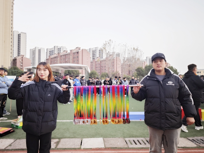 本次运动会突破新高,刷新多项纪录,成绩骄人,比赛项目分教工组和学生组,共12项,全校近千名运动员参赛。其中学生组,数字商贸与直播学院王志强以55秒92、7秒07的成绩,刷新男子400米、男子60米校运会纪录;工商管理学院李东雪以8.99米的成绩,刷新校运会女子铅球纪录;经贸旅游学院张卓然、工商管理学院叶宇轩分别以13.4米、12.92米的成绩刷新校运会男子铅球纪录;工商管理学院学生团队以1分03秒41的成绩刷新校运会女子4*100米纪录。