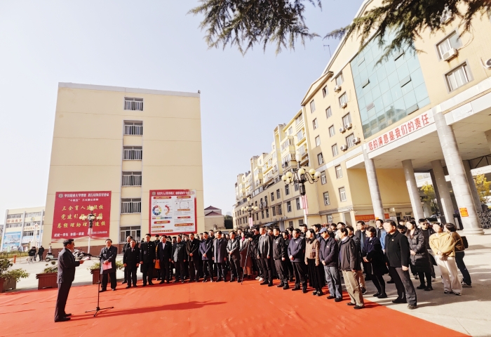 陈孝云邀请陈友信共同为“安徽数字创意职教集团”揭牌,揭开学校产教融合新篇章。陈友信现场发表讲话,表达了此行的目的和意义,并对绿海学院高水平大学建设取得的新进展表示祝贺。