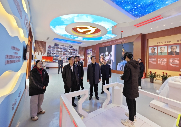 陈友信一行在陈孝云等校领导陪同下,先后参观了学校党建广场、党建文化馆、智慧思政教室,并详细了解了党建文化馆沉浸式VR智能装置,在深入了解绿海学院校园环境建设、校园文化建设等情况后,他对绿海学院“三位一体”党建、思政教育基地建设成果予以赞赏,对绿海学院坚持党建引领、立德树人、培根铸魂,培养星青年人才的举措及成果表示高度肯定。