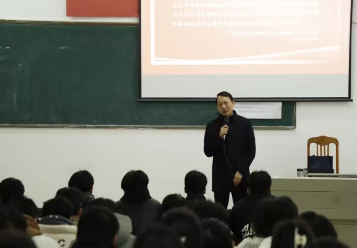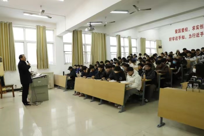 为进一步贯彻高校党委落实意识形态工作责任制,提升思政课教学质量和育人实效,推动思政课建设。2023年12月14号,教育厅督导专员、校党委书记孙永走进课堂一线,用创新的理论、严谨的逻辑、生动的语言、鲜活的事例,在阶梯教室三为计网225,计网226学生们带来一场富有思想性、理论性和亲和力的思政课。