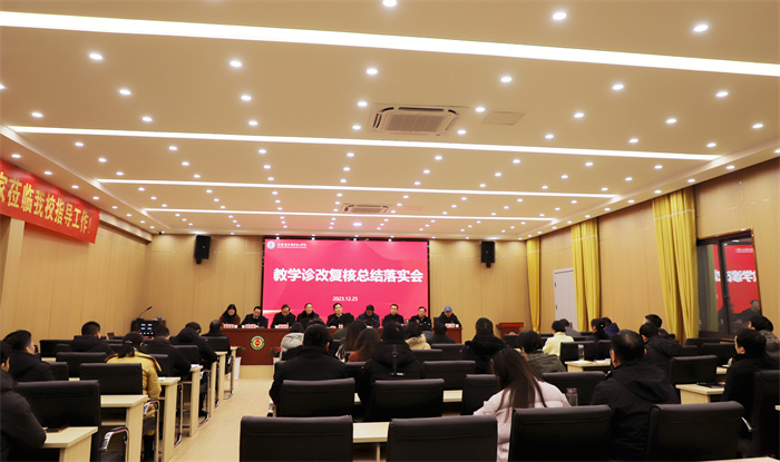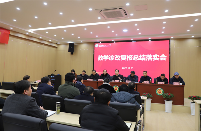 12月25日上午,教学诊断与改进复核工作总结落实会在学校科创实训馆二楼举行。学校领导班子成员、中层干部参加会议。会议由执行校长许信旺主持。