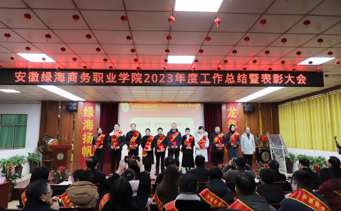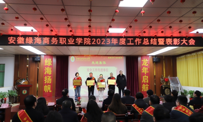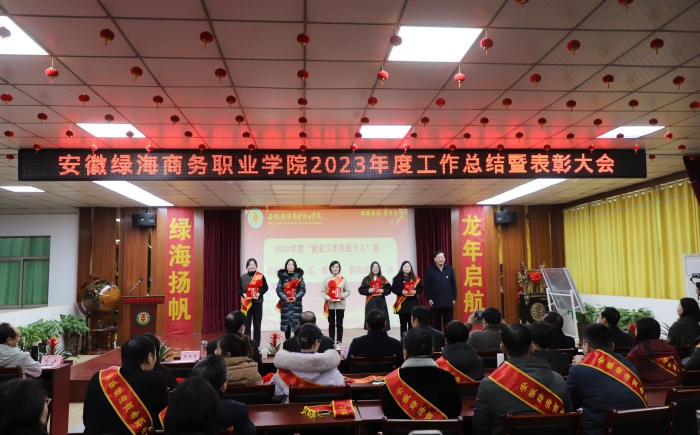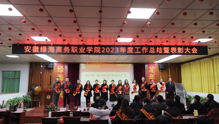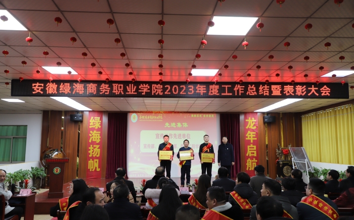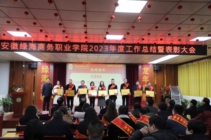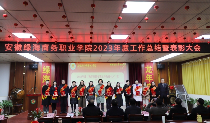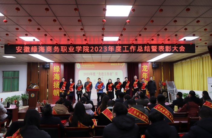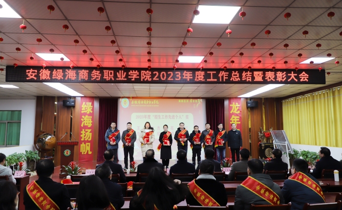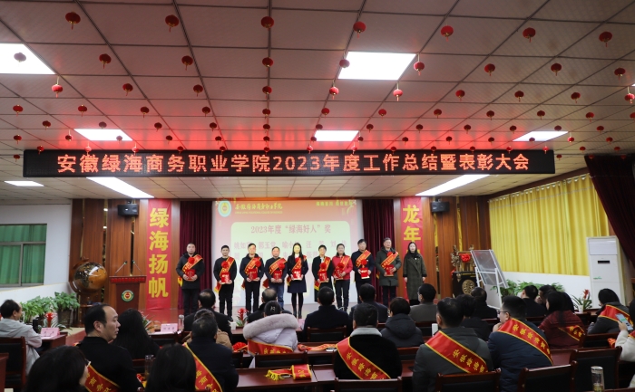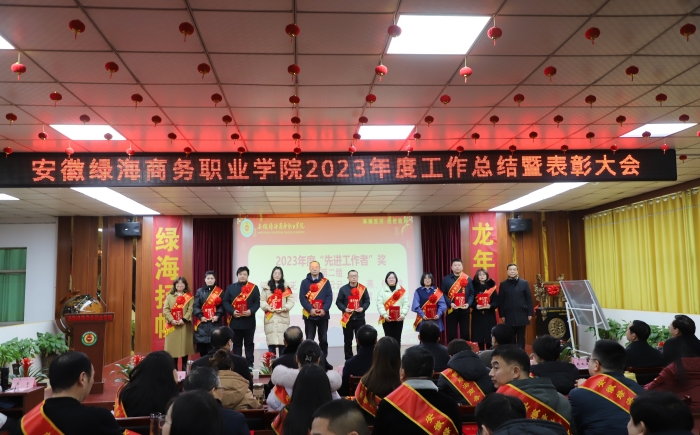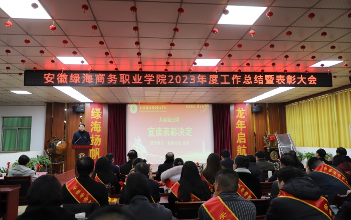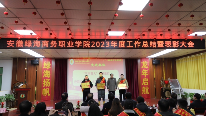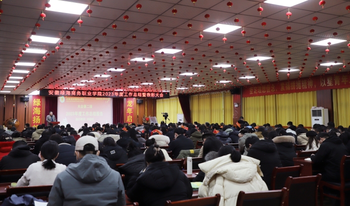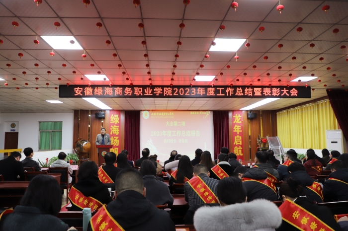 玉兔挥手满载去,金龙献瑞绿海来。为回顾总结过去一年的工作,表彰先进集体和个人,进一步激励绿海人踔厉前行的信心,1月19日上午,365集团在图书馆二楼隆重召开2023年度总结表彰大会,学校董事会、党政领导陈孝云、孙永、许信旺、石秀和、江传瑞、刘兴杰、张义廷、何世昆、陈艺鸣、吴玉等,与全体教职员工欢聚一堂,常务副校长主持大会。