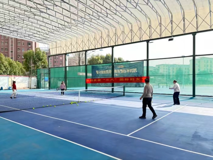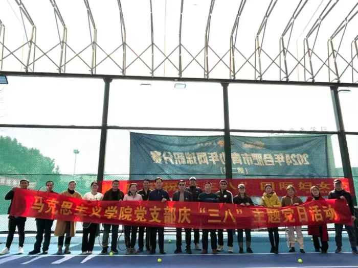 阳春三月,春暖花开。为庆祝第114个“三八”国际妇女节,丰富我院女教工的业余文化生活,让女教师们在紧张的工作之余放松心情、体验网球运动的魅力,享受节日的乐趣。3月8日下午,马克思主义学院党支部在学校室内网球场开展“庆三八展风采,共建和谐马院”的主题党日活动。马克思主义学院全体党员参加此次活动,安徽当代社会主义核心价值体系研究中心主任、学校董事长、党委副书记陈孝云以及相关处室干部以普通党员身份参加活动。