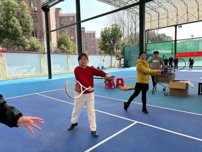 活动在大家的欢呼声中拉开帷幕,学院女教师们积极参加网球体验活动,男教师们在现场观摩的同时,也积极参与本次活动,与女教工同场体验。球场上热闹非凡,大家沐浴着春日暖阳,每个参与活动的老师脸上都洋溢着快乐的笑容,欢声笑语不绝入耳,教师们的身心得到了充分的放松。整个活动突出的主要是运动,旨在让大家在感受网球运动魅力的同时,放松身心以及感受到团结协作的重要性。