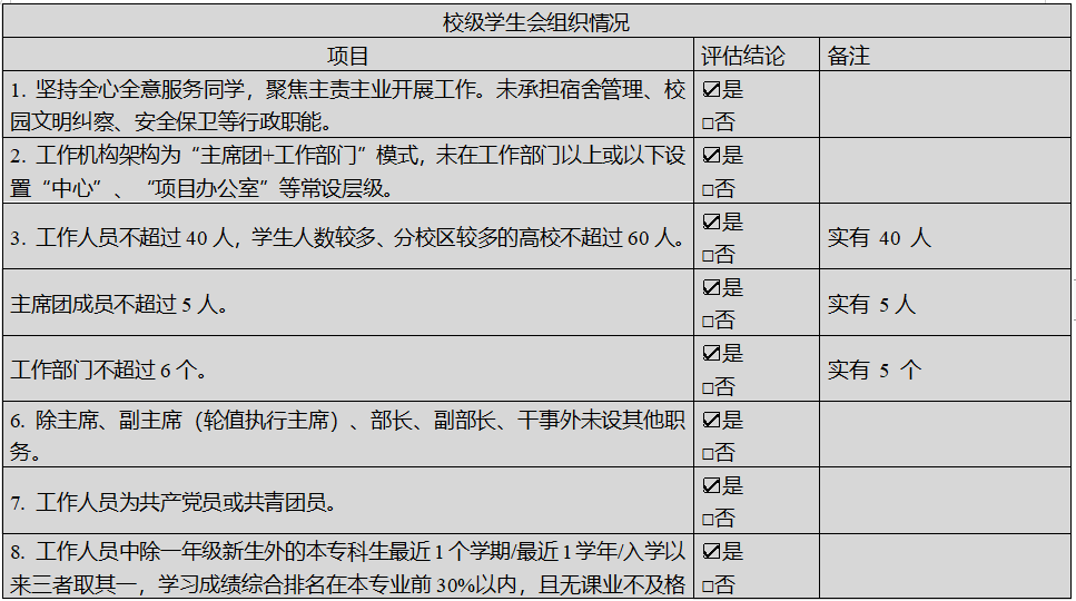 二级学院学生会改革自评表