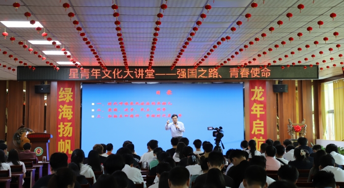 青年兴则国家兴,青年强则国家强。五四运动以无数先进青年知识分子为先锋、广大人民群众参加的彻底反帝反封建的伟大爱国革命运动,是一场中国人民为拯救民族危亡、捍卫民族尊严、凝聚民族力量而掀起的伟大社会革命运动。祝中侠说,“五四运动作为中国近代史上的重要事件,它不仅是一场爱国运动,更是一种精神,一种激励着无数青年人为实现中华民族伟大复兴而不懈奋斗的精神。”他强调,绿海“星青年文化”蕴含“爱国、担当、自强、闪光”之意,传承于五四新青年,是“爱国、进步、科学、民主”精神在新时代的延续和发展。“星青年”秉承“自强不息、知行合一、合作共享、内圣外王”的教育理念,是理想远大、品德高尚、视野开阔、开拓进取的青年群体,是新时代新征程上忠诚的爱国者、坚定的执火者、勇敢的追梦人。绿海学院“星青年人才培养模式”是新时代立德树人背景下为党育人、为国育才的具体实践。新时代星青年要继承和发扬五四精神,勇于担当、敢于创新,为实现中华民族伟大复兴的中国梦贡献青春力量。