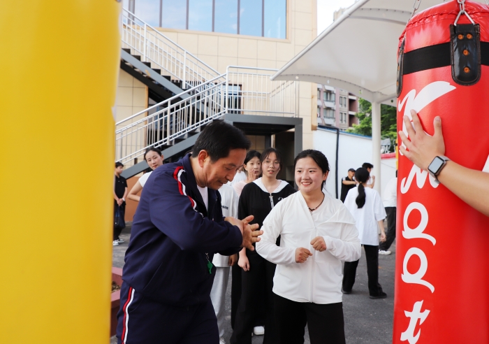 运动场上,星青年学子们精神奕奕,神采飞扬。在田径场,从俯卧撑、高抬腿训练等力量训练技巧,到腿法、拳法等体育武术运动,陈老师亲自示范;在星青年中国功夫馆,远踢、近打、漂亮的组合拳,陈老师现场手把手示范拳击运动,并与同学互动切磋,让同学们在一招一式中感受力量、技巧与激情揉为一体的拳击运动魅力。
