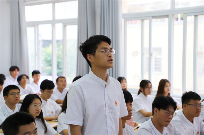子在川上曰:“逝者如斯夫!不舍昼夜。”科学与艺术学院的班会以“做时间的主人”为主题,以中华优秀传统文化作引入,告诉星青年学子“做好时间管理的重要性”。陈老师和在场学生一起共读诫子书,并观看了退役复学学生展示的军体拳。科学与艺术学院多次在国赛、省赛中获奖,陈老师希望同学们再接再厉,做时间管理的佼佼者。“阳光每天普照大地,但只有激光能切开钻石。”陈老师希望同学们进一步提高专注力,紧抓机遇、苦练本领、矢志奋斗、敢为人先,承担起时代赋予的责任与使命,争做与时代同行的有为星青年。