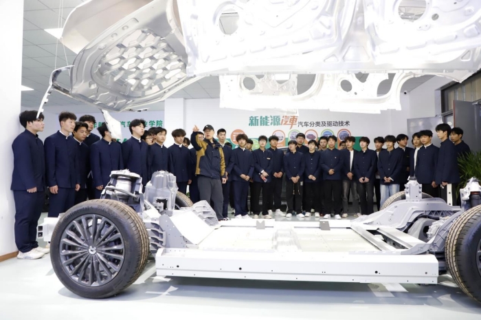专业课程方面。面向发展新质生质力和培育新型劳动者的需求,学校不断更新教学大纲、教材和授课内容,增加人工智能、大数据、云计算等新兴技术领域的课程,以及绿色能源、智能制造等相关技术的教学,培养新质生产力下优质技术技能型人才。产业学院采用基于“市场驱动、精准定制”的人才培养模式,使教学内容与行业发展同步、实训内容与项目实践同步、综合能力与岗位要求同步,实现“产业升级、教育联动”,创新开发活页式教材,融入职业能力、行业标准,构建由产业需求推动的“岗课证融通”专业课程体系,加快高素质、实用型技能人才的培养。