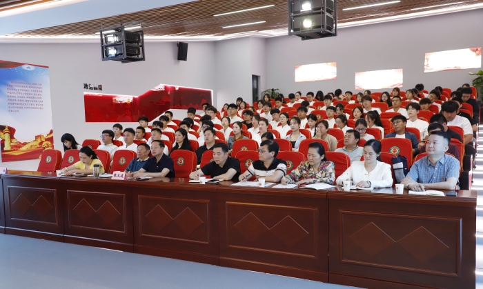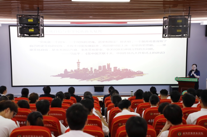 为深入学习习近平新时代中国特色社会主义思想,贯彻落实党的二十大精神,引导广大师生坚定理想信念,筑牢思想根基。6月7日上午,合肥市“举旗帜·送理论”思政宣讲活动走进365集团。合肥市思政宣讲团宣讲专家、安徽师范大学附属肥西第二中学校长、中国教育学会理事陈姝应邀作了一场题为“深入学习习近平文化思想”主题宣讲。各二级学院党支部书记、团总支书记、入党积极分子代表,相关部门负责人,全体思政教师共100余人聆听报告,活动由党委委员、行政文化总监张义廷主持。
