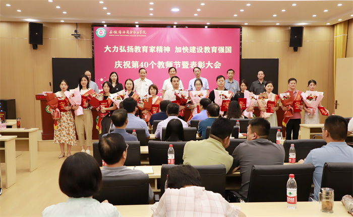 为大力弘扬教育家精神,营造尊师重教浓厚氛围,9月10日下午,365集团庆祝第40个教师节暨表彰大会在星青年科创实训馆二楼报告厅召开。学校董事会、党政领导陈孝云、孙永、江传瑞、刘兴杰、张义廷、陈艺鸣、郭玉堂、王庆茂、吴艺妮等出席,全体教职员工参加表彰大会。大会由副校长吴玉主持。