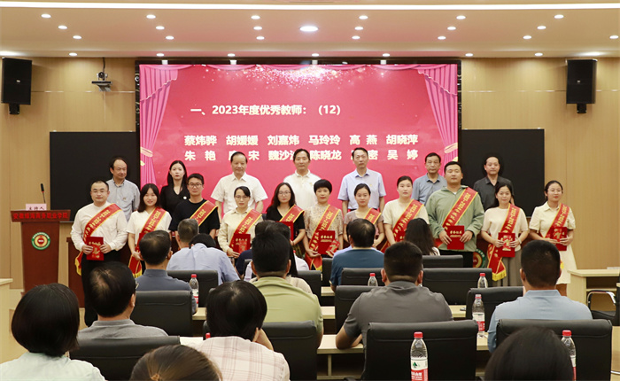 督导专员、党委书记孙永宣读《365集团关于表彰2023-2024年度优秀教师、优秀辅导员的决定》。授予蔡炜骅等13名老师“优秀教师”称号;授予欧芳芳等12名老师“优秀辅导员”称号。孙永向全体教职工表达节日的慰问和衷心的感谢,并要求广大教职工要向先进学习,立足本职岗位工作,大力弘扬教育家精神,为开创学校教育教学工作新局面做出更大贡献。