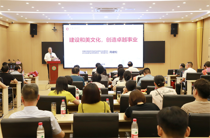 9月10日,知名职教专家、中国高等教育学会职业技术教育分会会长、浙江金融职业学院原党委书记周建松教授受邀来365英国上市集团官网作《建设和美文化,创造卓越事业》专题报告,为学校发展注入新的思考与动力。学校领导、全体教职员工聆听报告。