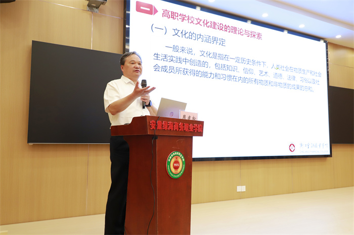 中国高等教育学会职业技术教育分会会长、知名职教专家周建松教授在绿海作“建设和美文化,创造卓越事业”专题报告