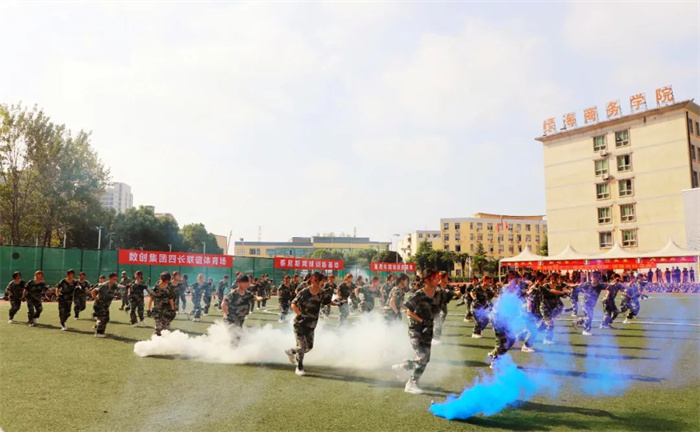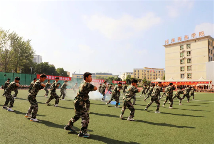 新生方队踏着激昂的分列式进行曲,依次走向主席台,进行了方队、队列展示和擒敌拳、匕首操等汇演。吸睛夺目的特色方阵、利落干脆的格斗术、强劲有力的匕首操、青春活力的韵律操、英姿飒爽的擒敌拳,一招一式都整齐划一、气势恢宏,口号嘹亮,步伐坚定,展现了新时代绿海星青年的青春风采和精神风貌,向全校师生递交了一份优异的答卷,向新中国75周年华诞献礼。