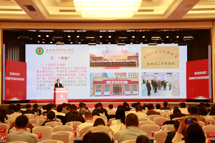 陈孝云教授以《党建铸魂思政赋能 构建“一核”、“五入”、“两创”工作机制 引领学校高质量发展》为题作交流发言
