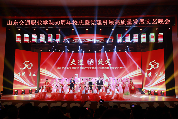 期间,与会人员共同观看了此次论坛承办单位之一的山东交通职业学院,举办的庆祝建校50周年暨党建引领高质量发展文艺晚会