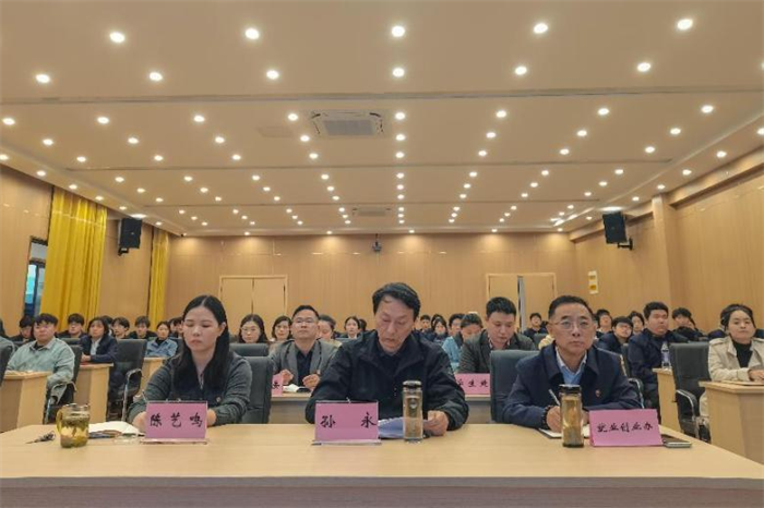 本次活动旨在深入贯彻执行党和国家有关高校毕业生就业工作部署和要求,更好地推进高校毕业生就业工作。学校组织师生在科创馆二楼会议室线下观看此次活动直播。校党委书记孙永、副校长陈艺鸣和学生处、团委负责人、就业创业办全体人员、2023级全体辅导员、学生代表观看直播。
