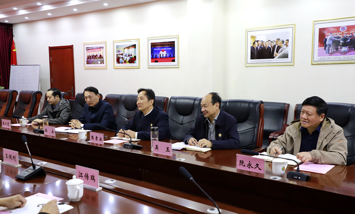 吴玉在致辞中代表学校对王佩刚一行莅临指导表示热烈欢迎,对省委教育工委长期以来对学校的关心支持表示感谢,并简要汇报了学校建设发展情况。他介绍,绿海学院始终围绕高水平大学建设目标,着力实施“一体两翼五重点”战略,深化内涵,提高质量,办学育人取得显著成效,不断推动学校向现代化、技能型、高水平大学阔步迈进。