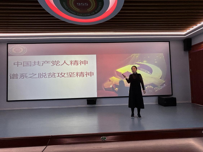 思政课教师马双双的宣讲以“彪炳史册的人间奇迹——中国新时代脱贫攻坚的伟大成就与精神”为主题,深入细致地讲述了中国脱贫攻坚事业取得的伟大成就、脱贫攻坚精神的基本内涵和乡村振兴战略思想。她指出,脱贫攻坚精神是中国共产党在脱贫攻坚伟大实践中形成的宝贵精神财富,它体现了上下同心、尽锐出战、精准务实、开拓创新、攻坚克难、不负人民的崇高品质。在宣讲过程中,马老师结合大量生动案例和详实数据,全面展示了中国脱贫攻坚战的艰辛历程和辉煌成就。她强调,脱贫攻坚精神不仅是中国共产党人的精神财富,更是激励全国人民为实现共同富裕目标而奋斗的强大动力。学生们纷纷表示,马老师的宣讲让他们对脱贫攻坚精神有了更加深入的认识和理解,深刻认识到中国共产党人一切为了人民、为人民谋福祉的永恒不变的初心使命。
