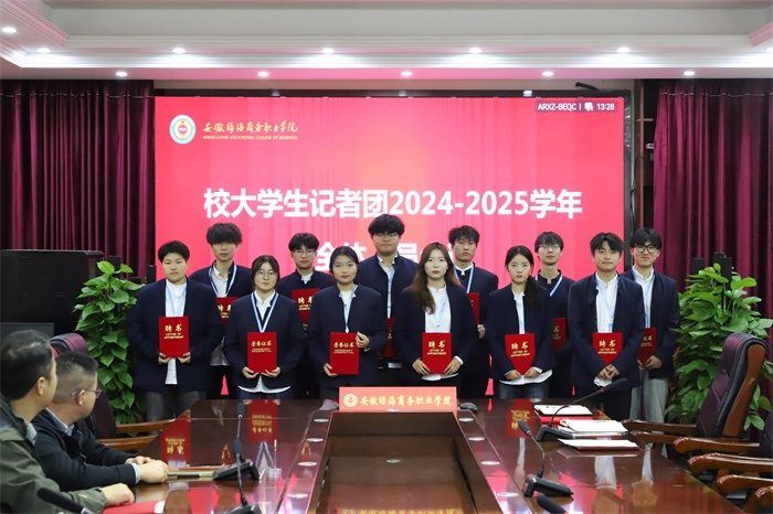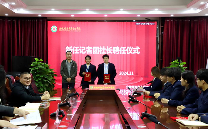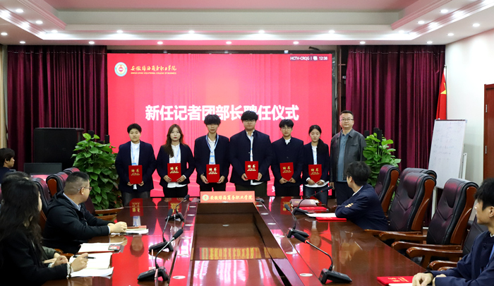 苏勇、姜维长两位老师分别为校大学生记者团新一届社长、部长颁发聘书。许珂担任新一届记者团社长,刘升珺琪,韩垓迪,韩府成,杨子阳,李少凝担任新一届记者团部长。记者团新任骨干们表示将带领记者团全体同学砥砺奋进,努力创造出更多优秀新闻作品,不断提升学校知名度、美誉度。