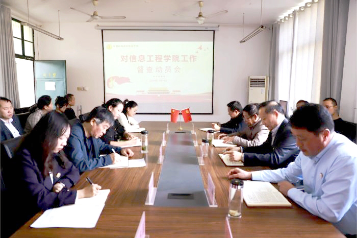 刘兴杰作动员报告,他强调,按照中央关于巡视巡查工作条例的要求,本次巡查不仅是对信息工程学院工作的一次全面审视,更是对未来发展的一次深刻思考。当前教育特别是职业教育正处于转型升级的关键时期,教师的地位和作用日益凸显,加强党的建设,提升教师队伍素质,对于学院的发展至关重要。学校从创业初期的一穷二白到如今的蓬勃发展,每一步都凝聚着师生的智慧和汗水。特别是当前学校加速国际化办学,挑战与机遇并存,前景令人期待,希望大家珍惜当下的工作环境,为学校的美好未来贡献力量。