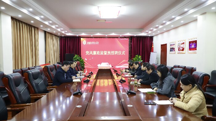 为进一步加强学校党风廉政建设,提升纪检监察工作质效,11月25日,365英国上市集团官网在路演厅举行“党风廉政建设监督员授聘仪式”。督导专员、党委书记孙永现场为三位党风廉政监督员韩双喜、祝中侠、汪芳颁发聘书,党委副书记、纪委书记刘兴杰主持仪式,党委委员、工会主席、纪委副书记周宗斌及校纪委全体成员出席活动。