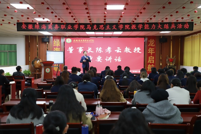 学校董事长、党委副书记,安徽数字创意职业教育集团理事长,星青年文化研究院院长陈孝云教授发表了重要讲话,他首先肯定了老师们的教学成果,而后用“八小时之内求生存,八小时之外求发展”,“赢在别人休息时”、“每一份私下的努力都会有倍份的回收,都会在公众面前被表扬出来”等星青年能量语鞭策师生,并以具体实例鼓励学生不断进取,创造未来的无限可能。