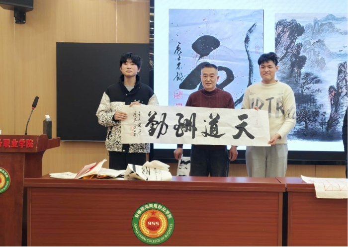 互动环节,学生们积极提问,就文房四宝的相关知识与康教授展开热烈交流,现场气氛活跃。讲座尾声,康本银教授还为学校书法社赠送墨宝,激励同学们在书法艺术道路上不断探索前行。