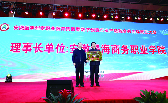 学校深化产教融合、校企合作、科技融汇,联合280多家企业、行业协会和高水平职业学校,成立安徽数字创意职教集团。联合华为、海尔、科大讯飞、中智财经、蔚来汽车、孪生宇宙等龙头企业共建数字创意、蔚来汽车、海尔智慧家居、科大讯飞人工智能、元宇宙数字经济等8个产业学院。