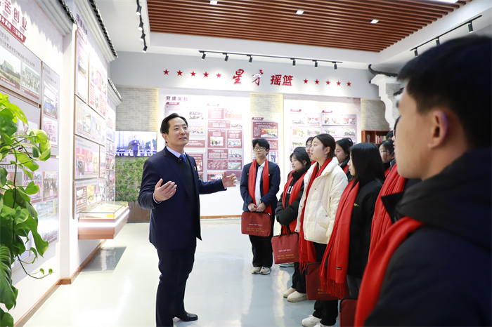在校党建馆中,一幅幅珍贵的历史图片、一件件斑驳的展陈实物、一段段可歌可泣的英雄事迹,让同学们仿佛回到那个战火纷飞的革命岁月。