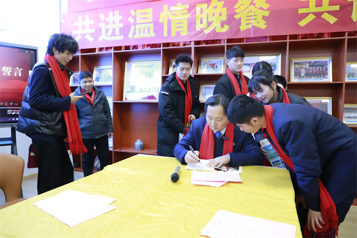 晚上六点半,结束了一天的行走,同学们在温暖的餐厅内,一边吃着学校精心准备的暖心晚餐,一边敞开心扉,和陈老师围坐一席,畅聊自己的梦想,现场沉浸在一片热烈的温情中。