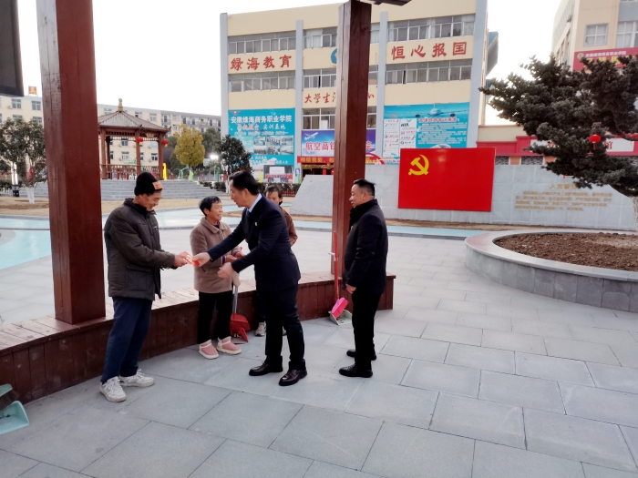 1月28日下午,在农历乙巳蛇年春节即将到来之际,学校董事长、党委副书记、星青年文化研究院院长、安徽数字创意职业教育集团理事长陈孝云教授,董事会董事、总务处处长孙圣祥在学校大门值班岗和党建文化广场看望慰问学校安保、保洁等后勤保障一线值班值守人员,为他们送上深深祝福和慰问金。陈孝云教授代表学校董事会、党委、行政和全体师生向他们表示亲切的慰问,详细询问了大家的生活、住宿及过年安排情况,对大家在节假日期间的辛勤付出和作出的贡献表示衷心感谢,并向他们及其家人致以新年最良好的祝愿和美好的祝福。