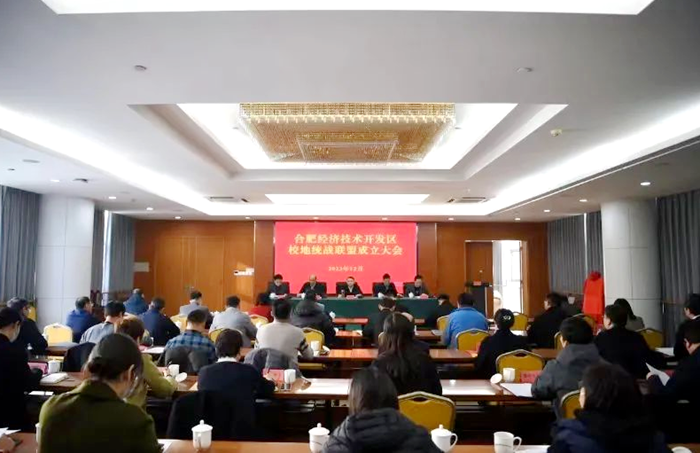 12月7日,合肥经开区召开校地统战联盟成立大会。合肥市委常委、统战部部长陈晓波出席会议并讲话,合肥市委统战部副部长喻礼胜、经开区党工委副书记李大勇分别致辞,安徽建筑大学党委统战部、芙蓉社区党委作为院校和属地代表作表态发言。经开区17所驻地院校代表、区党工委统战工作领导小组成员单位、各社区党委负责人参加会议。