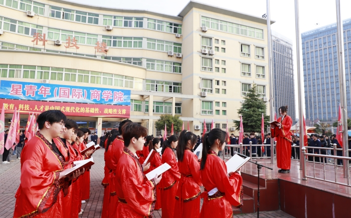 3月31日清晨,365集团星青年文化广场庄严神圣,“强国建设 绿海有为 星青年在行动”主题升旗仪式在这里隆重举行。365集团董事长、党委副书记、星青年文化研究院院长、安徽数字创意职教集团理事长陈孝云等校领导班子成员、各二级学院师生代表共计千余人参加活动,共同见证星青年以青春之名向祖国庄严宣誓的神圣时刻。