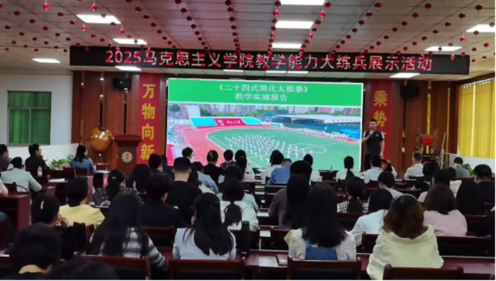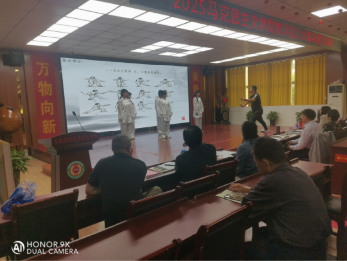 为深入贯彻党的二十大及二十届三中全会精神,积极落实《关于全面深化新时代教师队伍建设改革的意见》等相关部署,扎实推进教育数字化转型发展,深入探索“岗课赛证融通”的人才培养模式,切实提升教师教育教学能力与专业技能。2025 年 4 月 11 日下午 2 点,在教务处统一安排下,马克思主义学院于图书馆二楼成功举办了《体育与健康》课程教学能力大练兵展示活动。