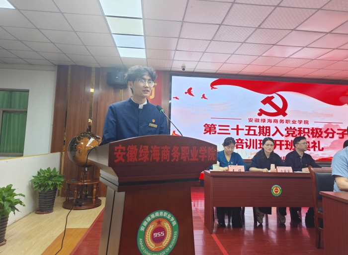 信息工程学院计算机网络技术238班苏礼贺同学代表学员发言表态,表达了对中国共产党的热爱和崇敬之情,表明积极要求进步、渴望加入党组织的强烈愿望和决心。